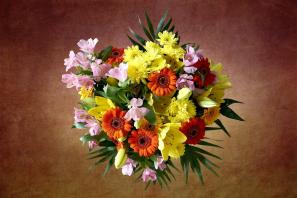 Kukkakimppu korkeaan maljakkoon