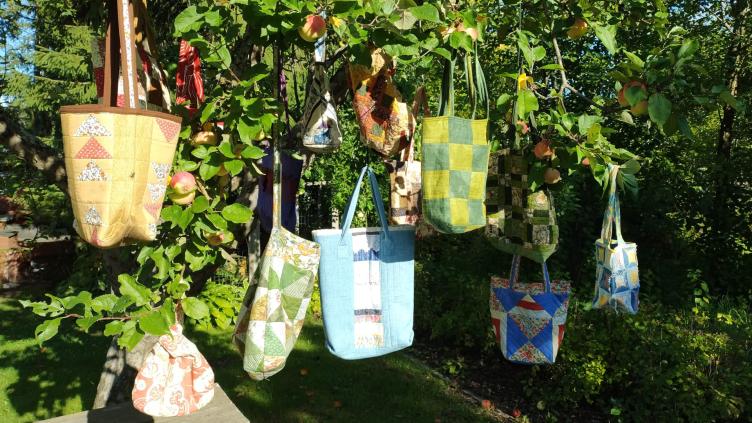 Kankaisia tilkkukasseja ja -laukkuja